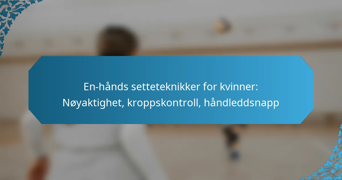 En-hånds setteteknikker for kvinner er avgjørende for å levere ballen med presisjon og kontroll i ulike idretter. Ved å fokusere på spesifikke øvelser, riktig håndposisjonering og kroppskontroll, kan spillere forbedre sin nøyaktighet og utvikle effektive håndleddssnap-teknikker, noe som fører til bedre spill og ferdighetsutførelse.
