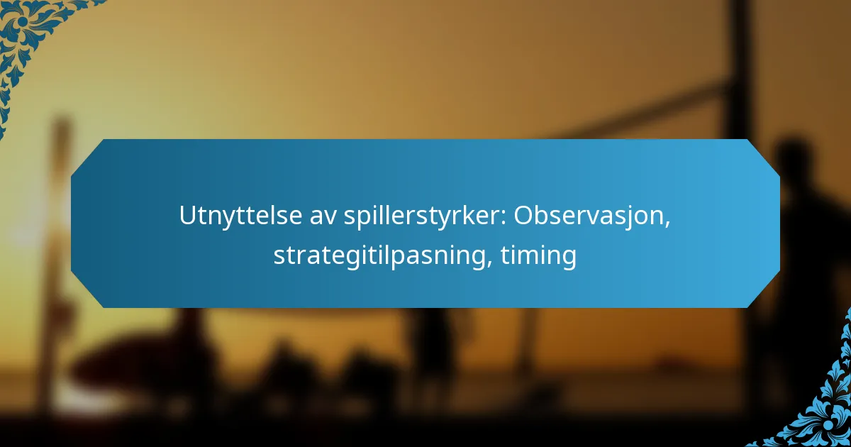 Å utnytte spillernes styrker er avgjørende for å forbedre lagets prestasjoner, noe som krever effektive observasjonsteknikker for å vurdere individuelle ferdigheter under trening og spill. Ved å tilpasse strategier for å utnytte disse styrkene, kan trenere justere spillplaner i samsvar med hver spillers unike evner. I tillegg kan det å gjenkjenne det optimale tidspunktet for å bruke disse styrkene i nøkkeløyeblikk i en kamp betydelig forsterke en spillers innvirkning på banen.
